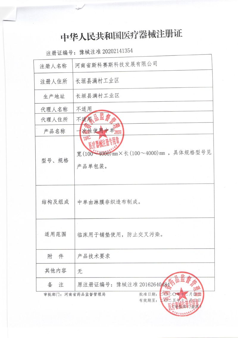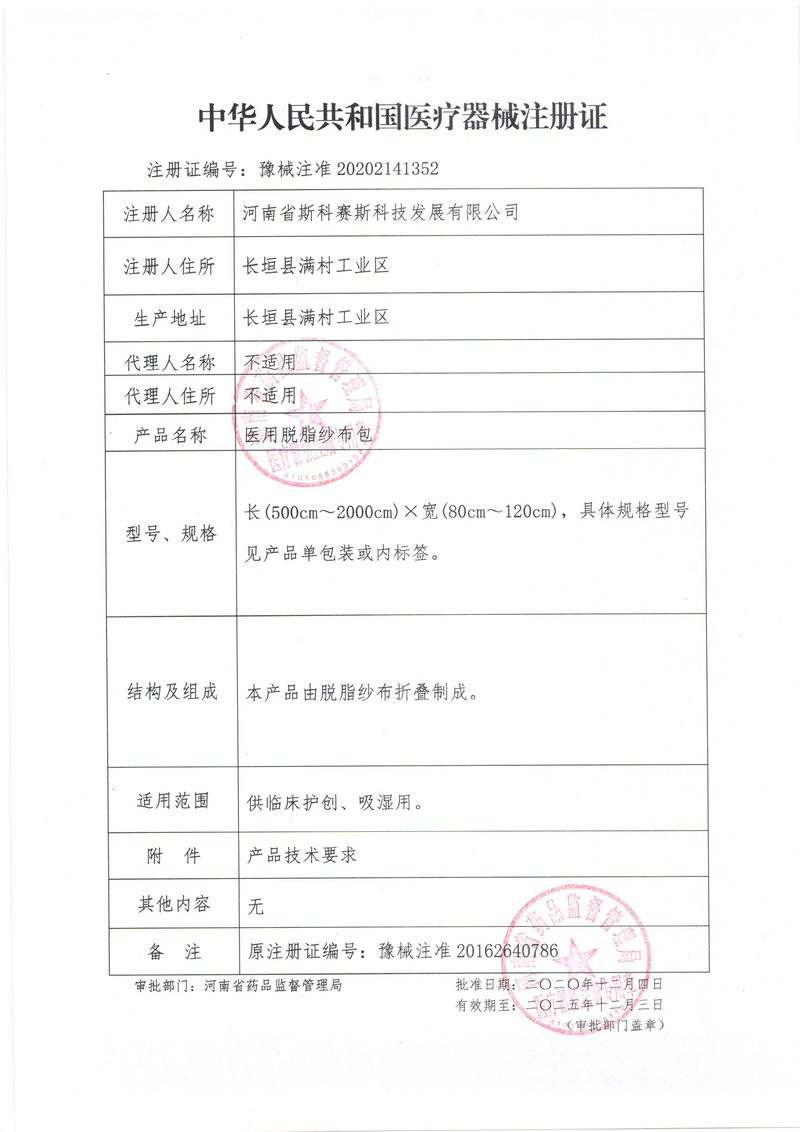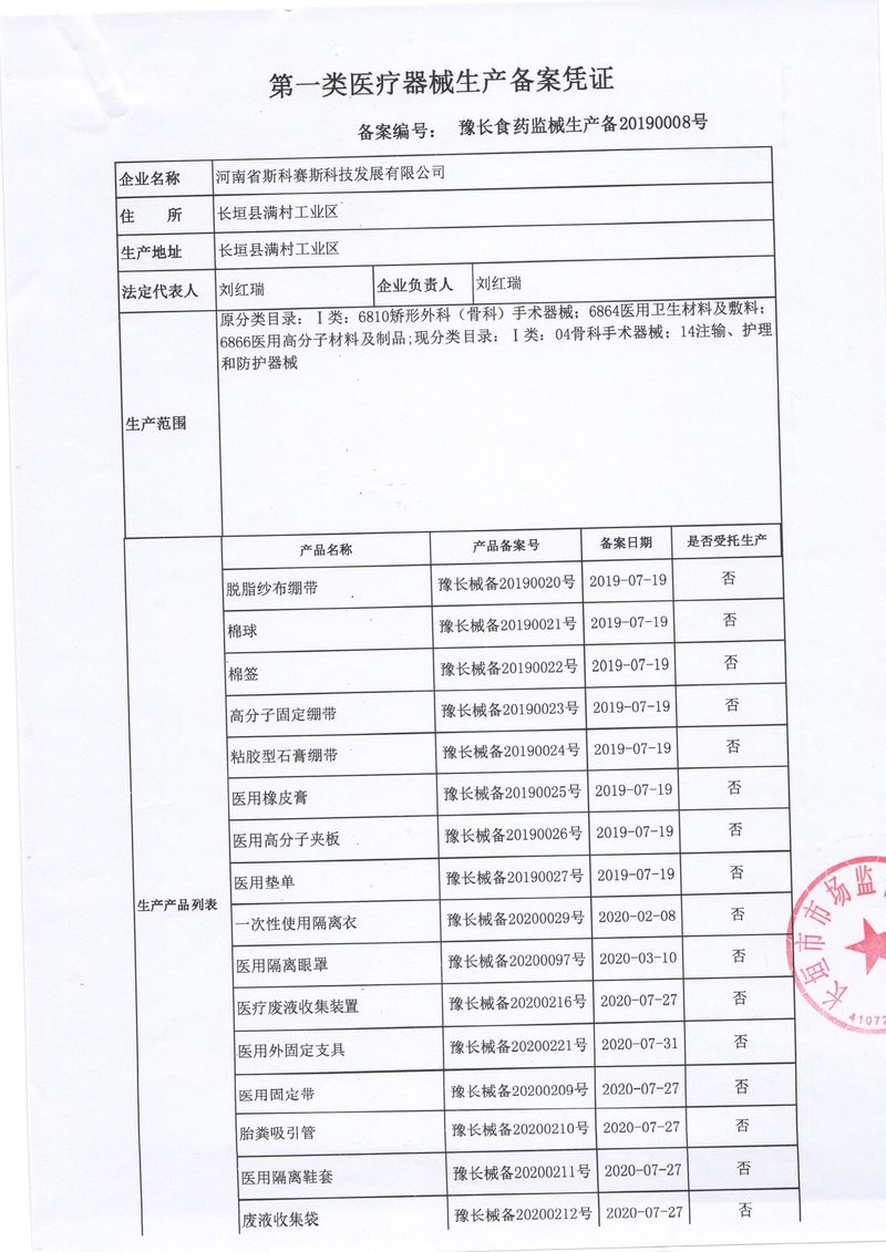 河南省斯科賽斯科技發(fā)展有限公司創(chuàng)建于 2011 年,位于“中國醫(yī)療耗材之都”- 河南省長垣縣,西臨 308 省道,南靠新菏鐵路,北依長濟(jì)高速,交通便捷,經(jīng)濟(jì)發(fā)達(dá),環(huán)境優(yōu)美。斯科賽斯積極進(jìn)入醫(yī)療健康和服務(wù)領(lǐng)域,秉承為用戶創(chuàng)造價值的理念,專注于醫(yī)用耗材解決方案的研發(fā)和運(yùn)營,并為用戶提供完善的產(chǎn)品解決方案;  斯科賽斯主要生產(chǎn)醫(yī)用麻醉系列、醫(yī)用高分子系列、醫(yī)用敷料包系列、醫(yī)用無紡布系列、醫(yī)用防護(hù)系列、醫(yī)用脫脂棉系列、生物材料制品類等七大類、100 多個品種、400 多個規(guī)格的產(chǎn)品。公司占地面積約 30000 平方米,建筑面積20000 平方米,擁有 10 萬級的凈化車間總面積 10000 平方米。擁有國際先進(jìn)水平的生產(chǎn)設(shè)備和檢測儀器,技術(shù)裝備精良,檢測手段完善,為醫(yī)療行業(yè)的不斷發(fā)展進(jìn)步提供保障。公司順利通過 ISO9001、ISO13485 質(zhì)量管理體系認(rèn)證。  斯科賽斯堅(jiān)持研發(fā)高科技新產(chǎn)品,力爭在醫(yī)療器械關(guān)鍵領(lǐng)域取得技術(shù)和研發(fā)的重大突破;立足國內(nèi)和國際兩個市場,逐步實(shí)現(xiàn)管理理念、經(jīng)營機(jī)制、人力資源、技術(shù)、產(chǎn)品、市場等全方位對接,提高企業(yè)的核心競爭力;過去的歲月里,斯科賽斯砥礪前行,誠信務(wù)實(shí),銳意進(jìn)取,不斷創(chuàng)新,用自己的睿智和辛勞,以富有責(zé)任感的使命,在探索中追求,在追求中超越,致力于成為值得信賴的醫(yī)療用品生產(chǎn)企業(yè)!在未來的日子里,斯科賽斯將一如既往豪情滿懷,信心百倍,攜手并肩,執(zhí)著追求,向更高的的目標(biāo)前進(jìn),鑄造新的輝煌!